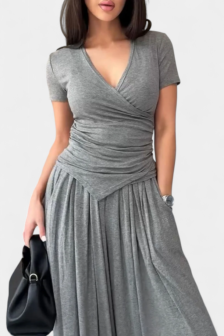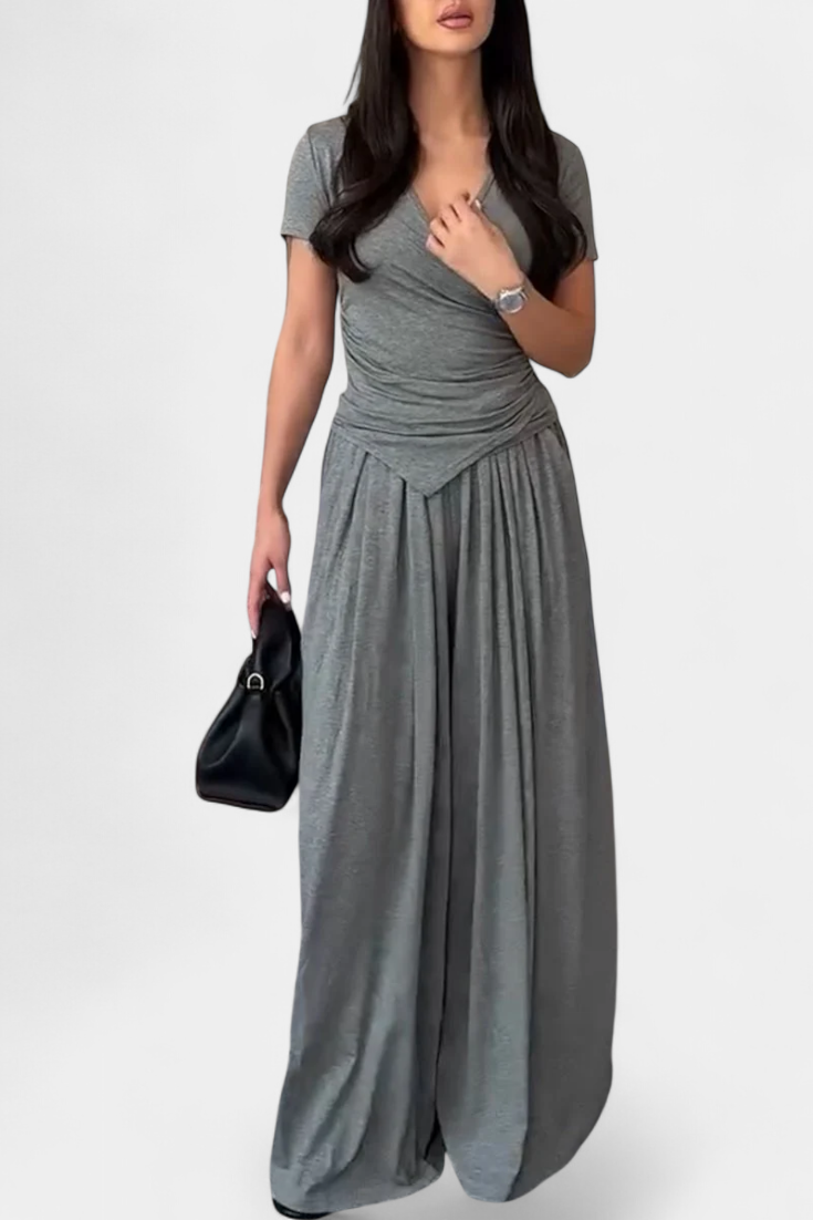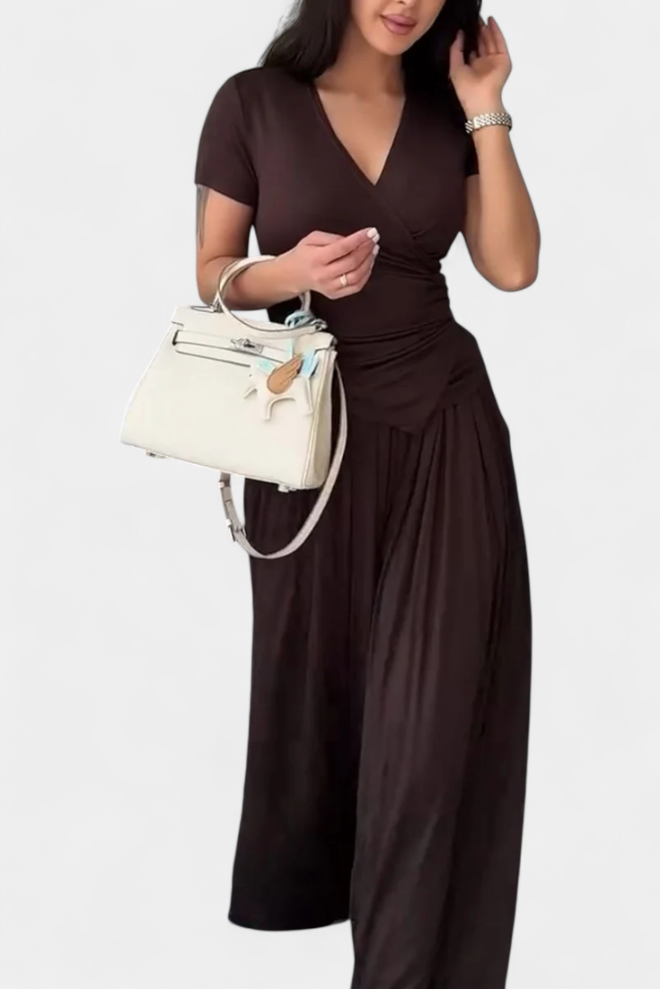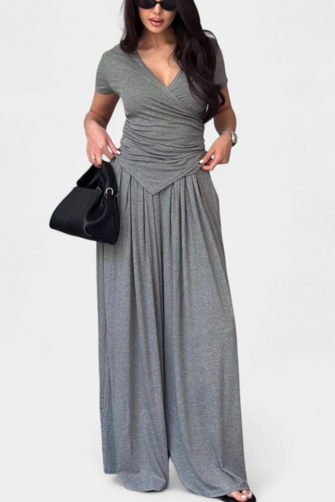 Ruslana Conjunto Cómodo de Dos Piezas con Escote en V Cruzado