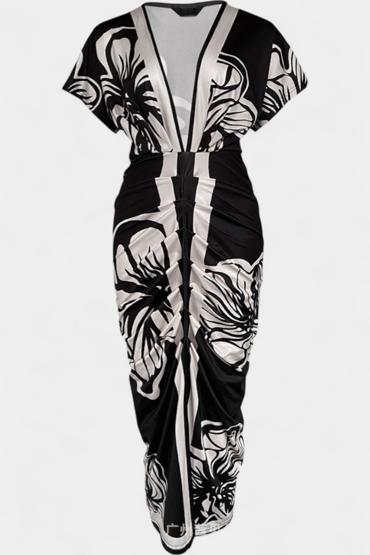 Diva Vestido Largo con Estampado Floral, Escote en V y Abertura Lateral