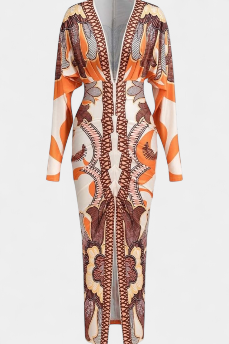 Femenino y sofisticado, el vestido Diva combina un elegante estampado floral con un escote en V pronunciado y una abertura lateral que aporta movimiento y un toque sensual. Confeccionado en un tejido premium suave y transpirable, ofrece comodidad durante todo el día sin renunciar al estilo. Su cintura ajustada realza la silueta, mientras que las mangas largas equilibran el look para un acabado refinado.