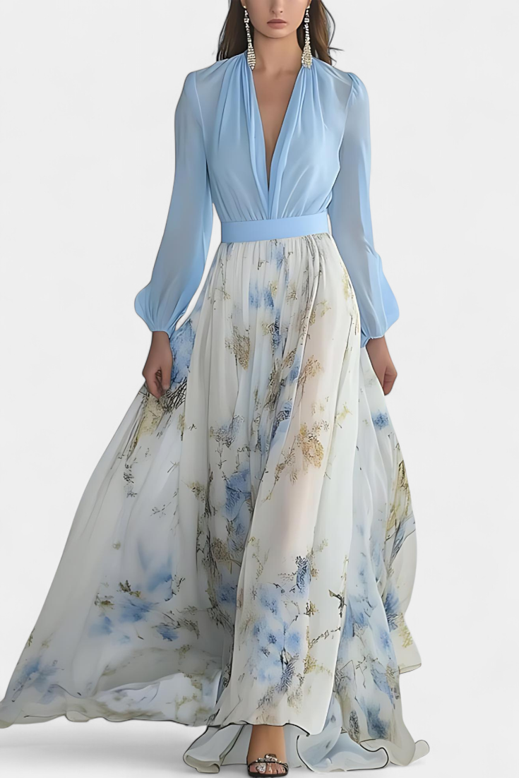Eliane Vestido Largo con Estampado Floral y Escote Profundo