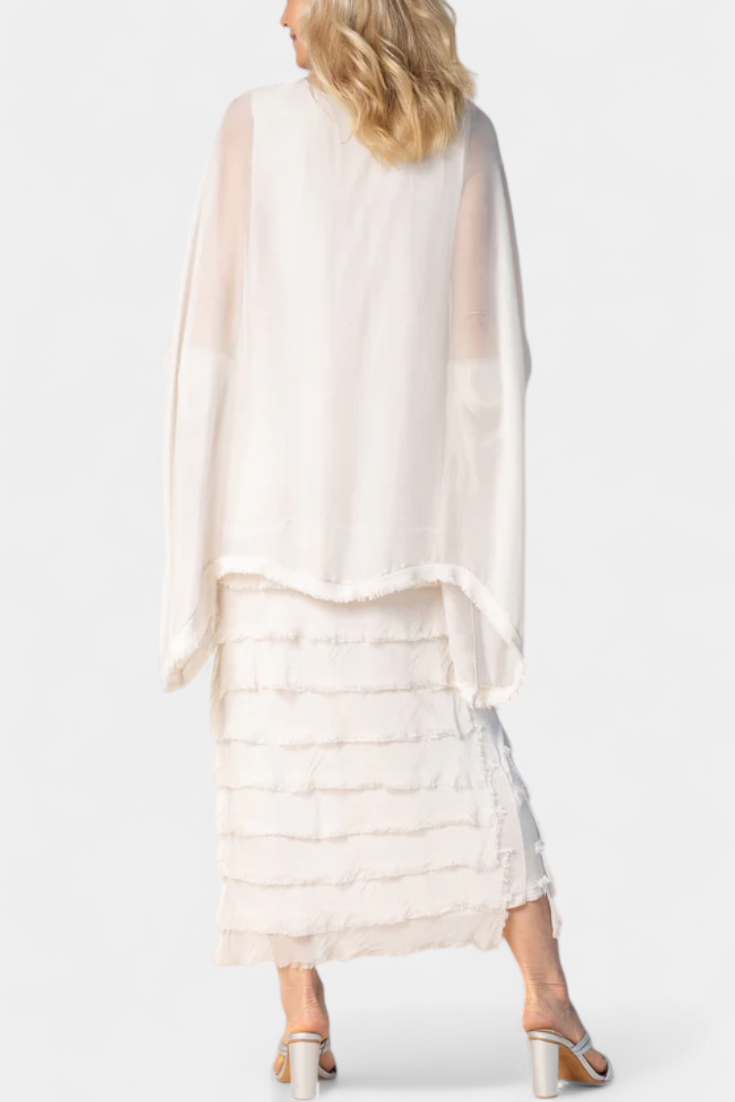 Rosaria Vestido Midi con Volantes y Bordes Deshilachados