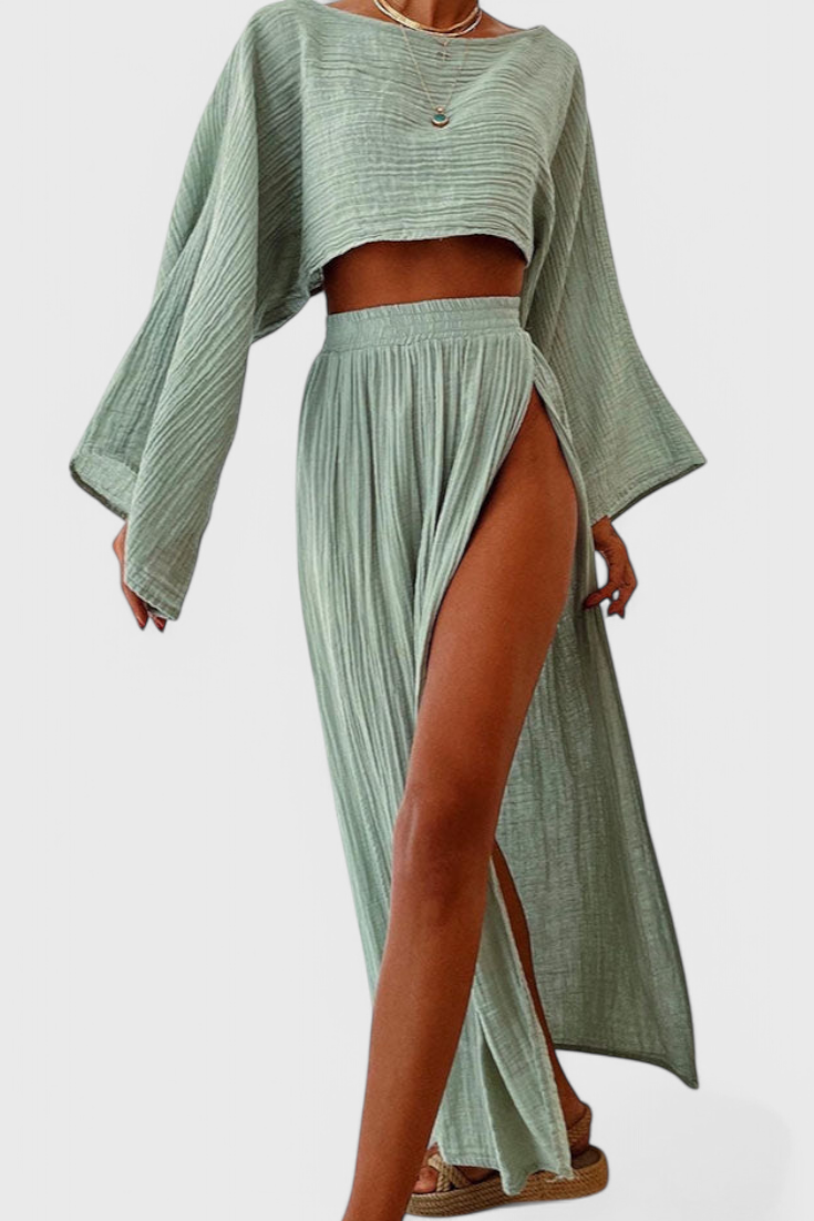 Zelda Conjunto de Camisa Escote en V y Falda con Abertura