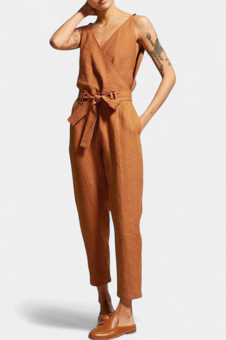 Zoe Mono Elegante con Escote en V y Cinturón Ajustable