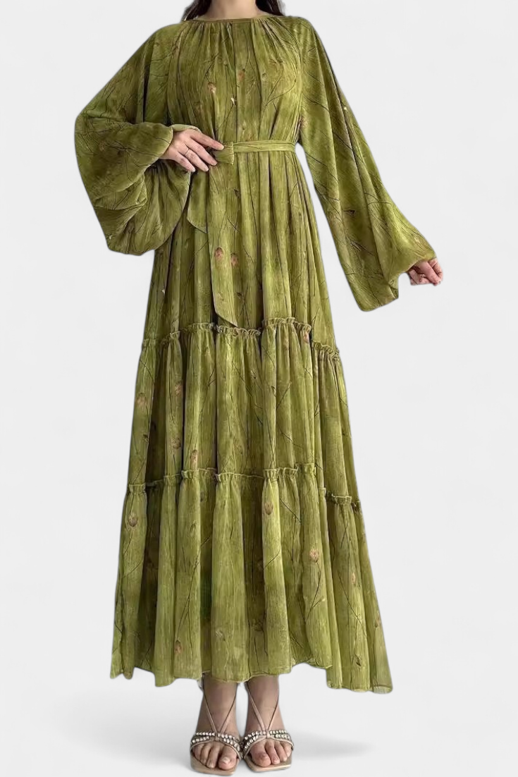 Sibley Vestido Maxi de Lino con Estampado Exclusivo y Cinturón