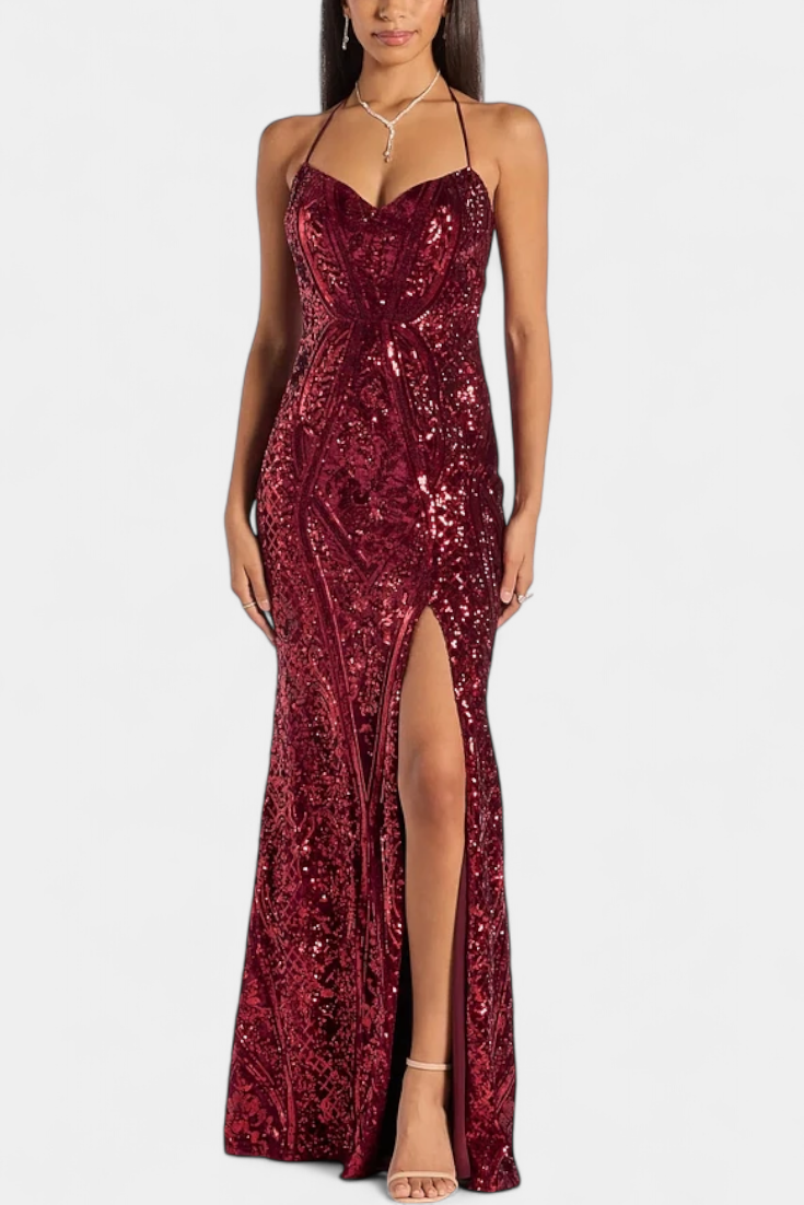 Marleni Vestido Halter con Lentejuelas