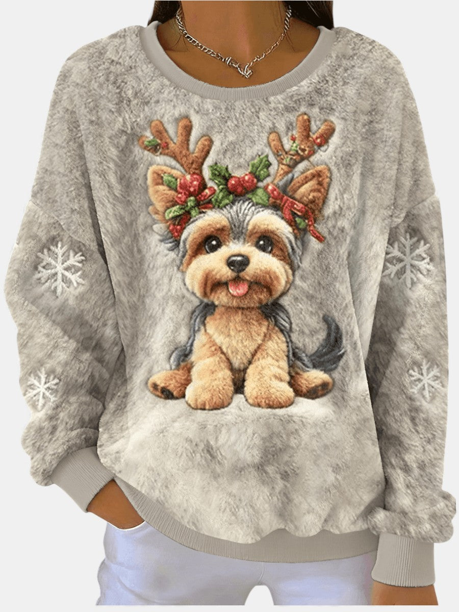 Suéter de Franela Casual Marta con Arte de Perro de Navidad