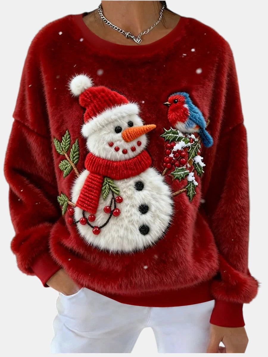 Sudadera de Franela Alba con Arte de Muñeco de Nieve y Aves