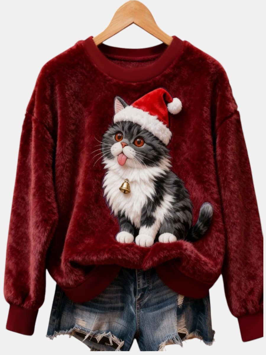 Una propuesta cálida y encantadora que combina abrigo y espíritu navideño en una sola prenda. Su diseño felpudo con el gatito navideño aporta ternura y un estilo único, disponible en dos colores festivos para adaptarse a tu look. El tejido suave garantiza comodidad y calidez, ideal para los días fríos de invierno.
