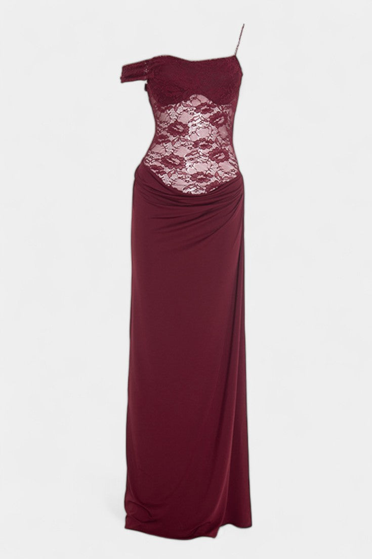 Castanza Vestido Maxi Asimétrico de Encaje con Dobladillo