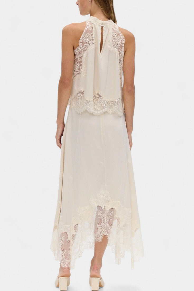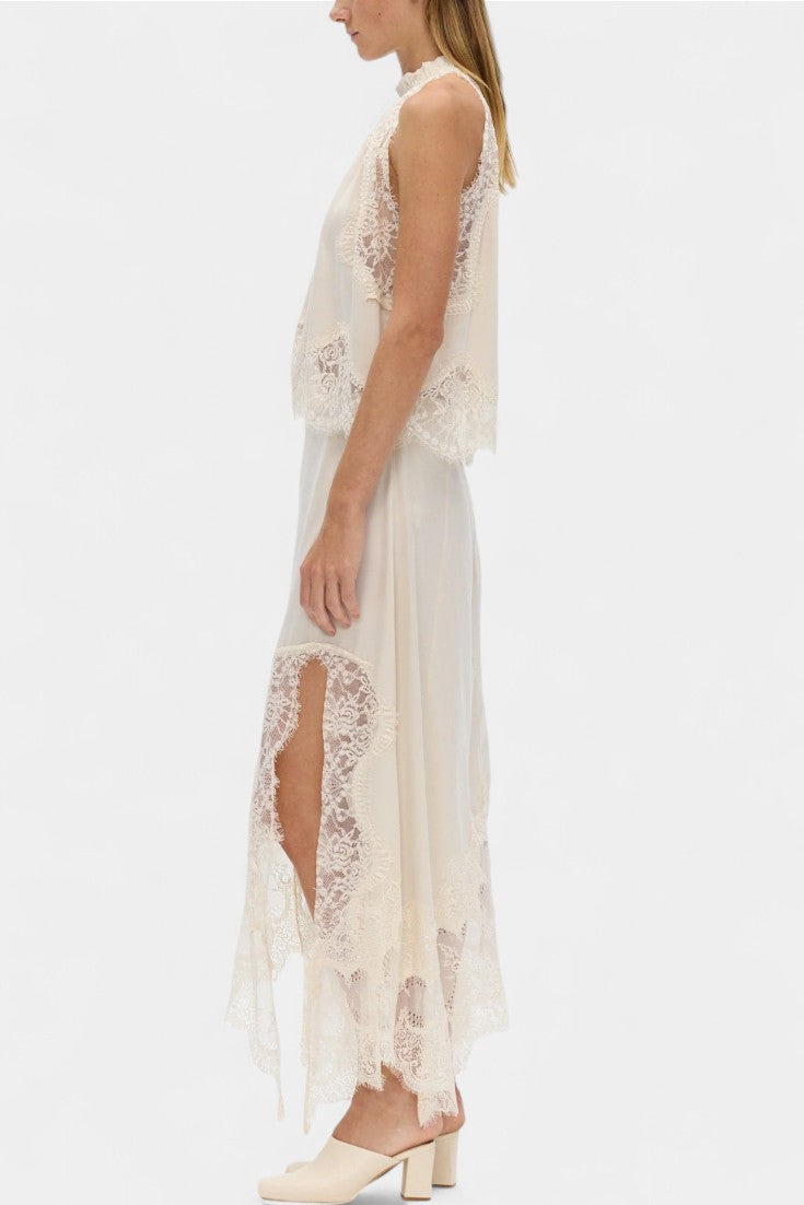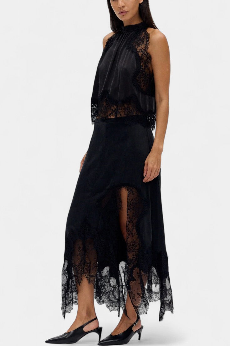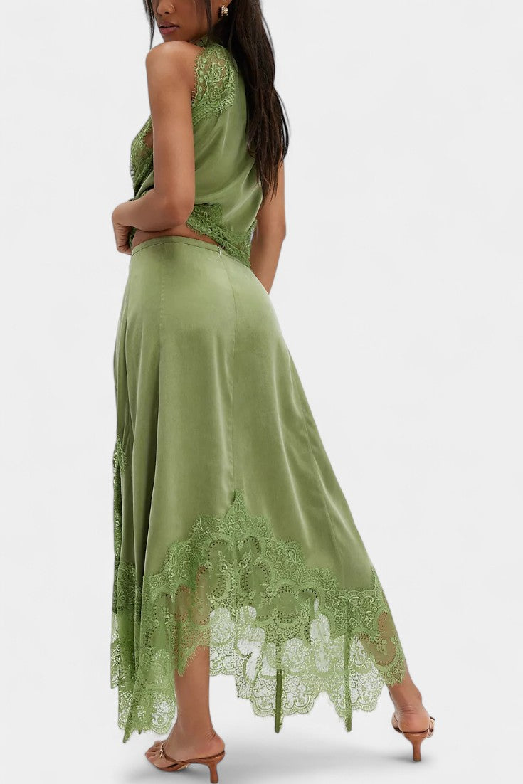 Coralena Conjunto de Falda Midi de Encaje con Dobladillo Asimétrico