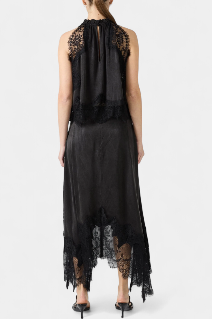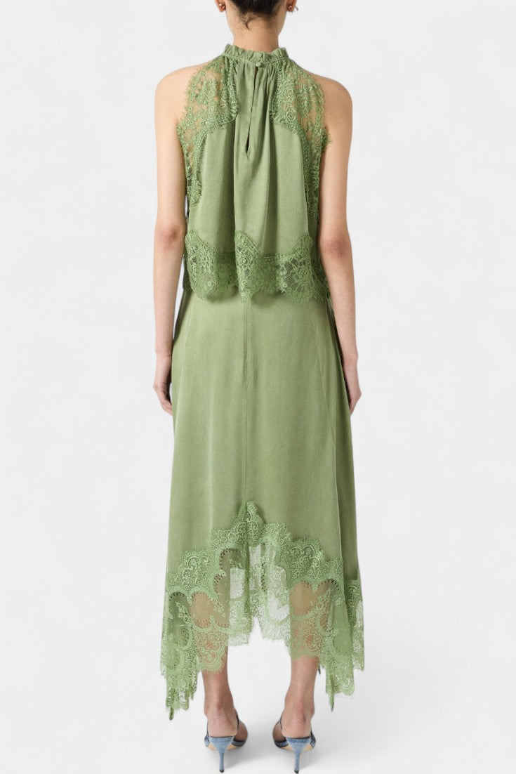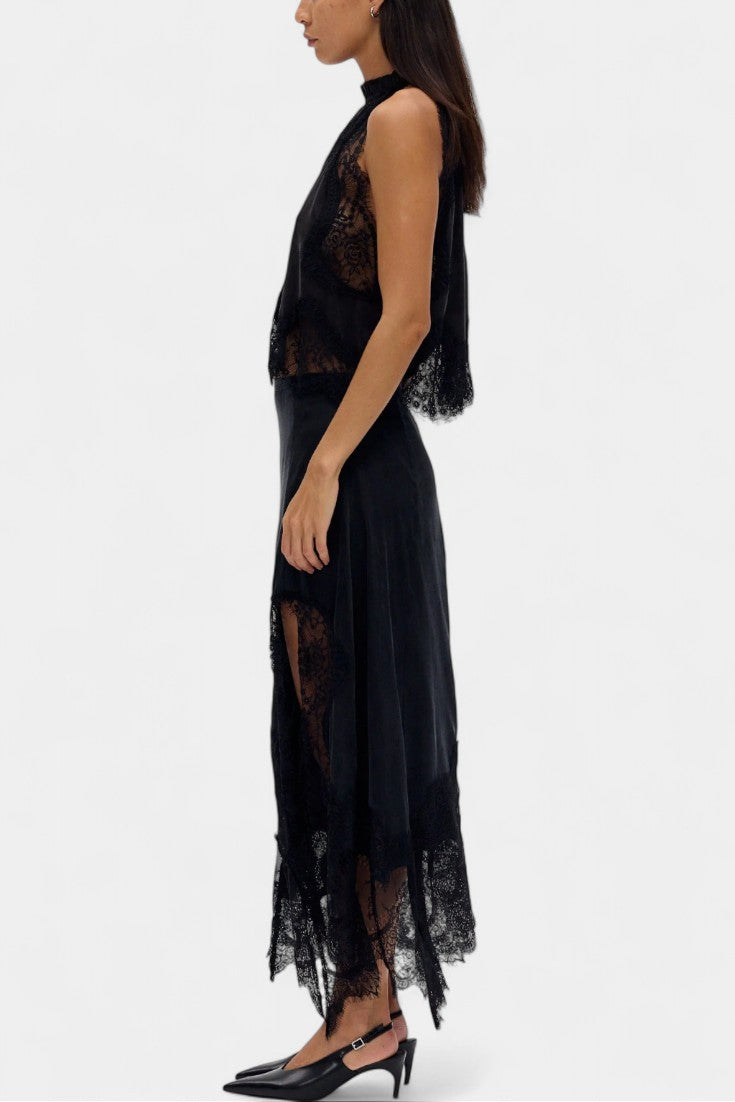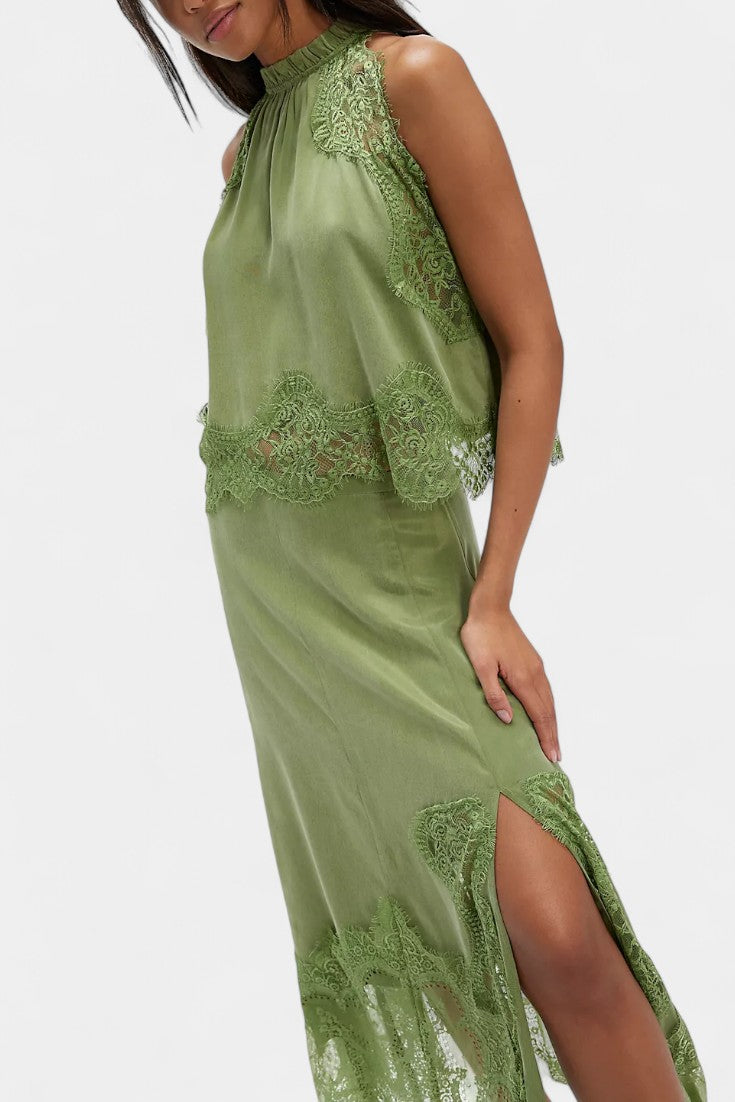 Coralena Conjunto de Falda Midi de Encaje con Dobladillo Asimétrico