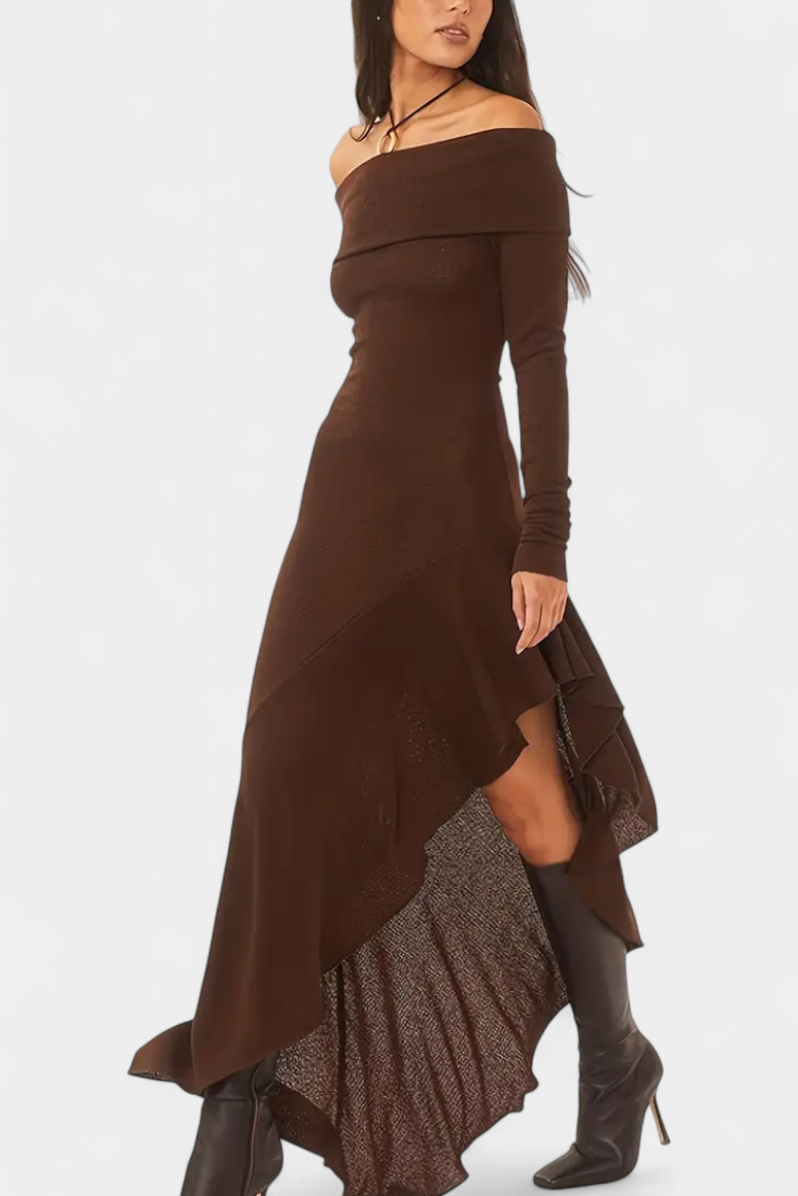 Recife Vestido Largo Asimétrico de Un Solo Hombro con Manga Larga