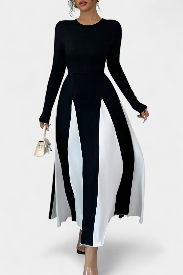 Veronique Vestido Maxi de Manga Larga en Contraste de Color