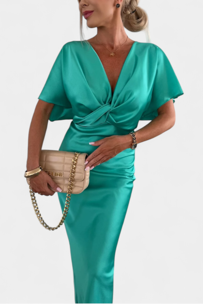 Dolores Vestido Elegante con Cintura Torcida y Escote en V