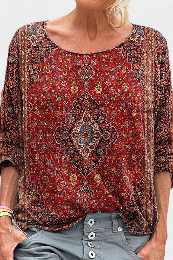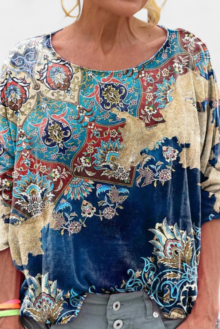 Omari Blusa Holgada de Estampado Bohemio Retro
