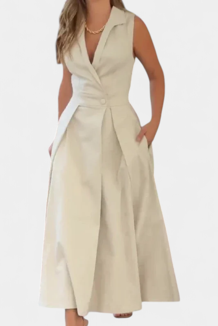 Beverly Vestido Blazer Sin Mangas con Corte A y Botones