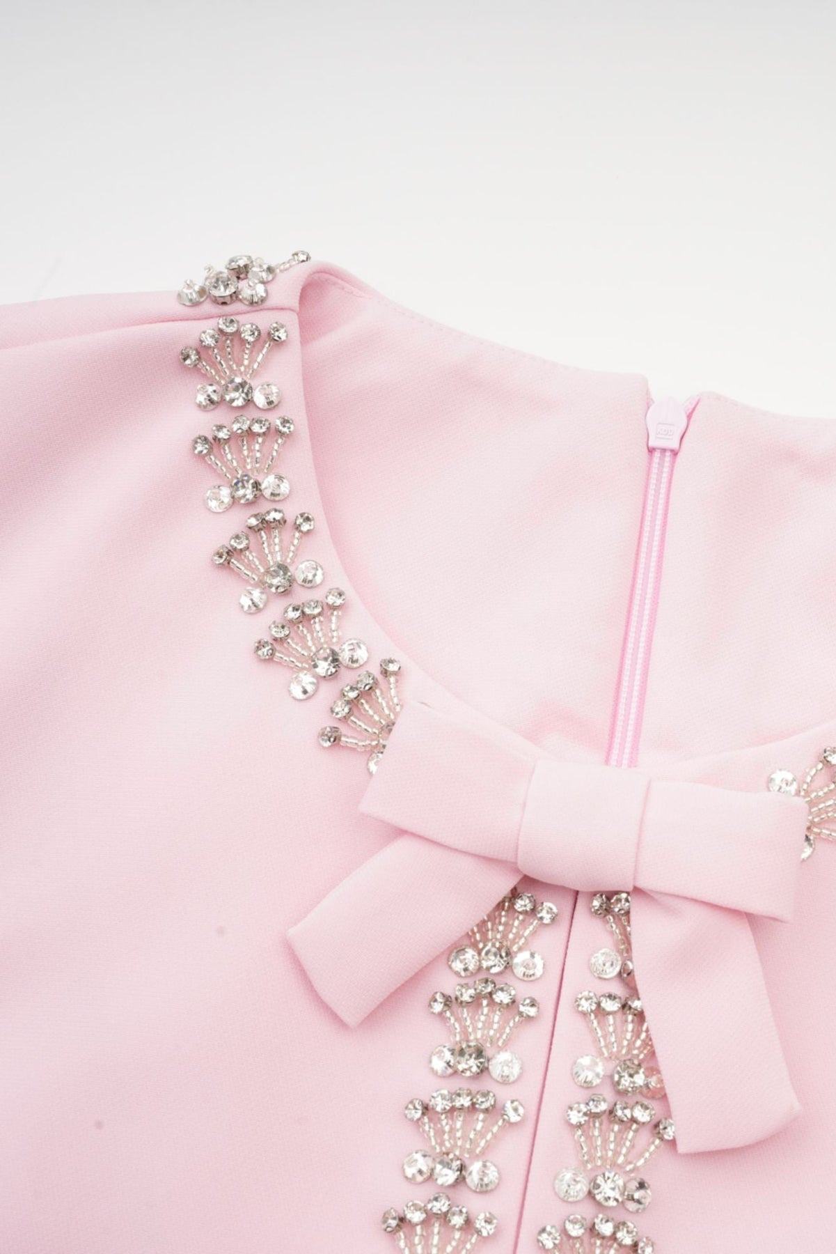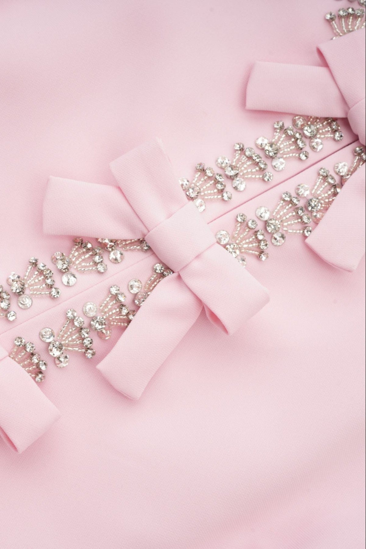 Linda Vestido Midi Acampanado con Lazo de Cristal y Detalles Elegantes