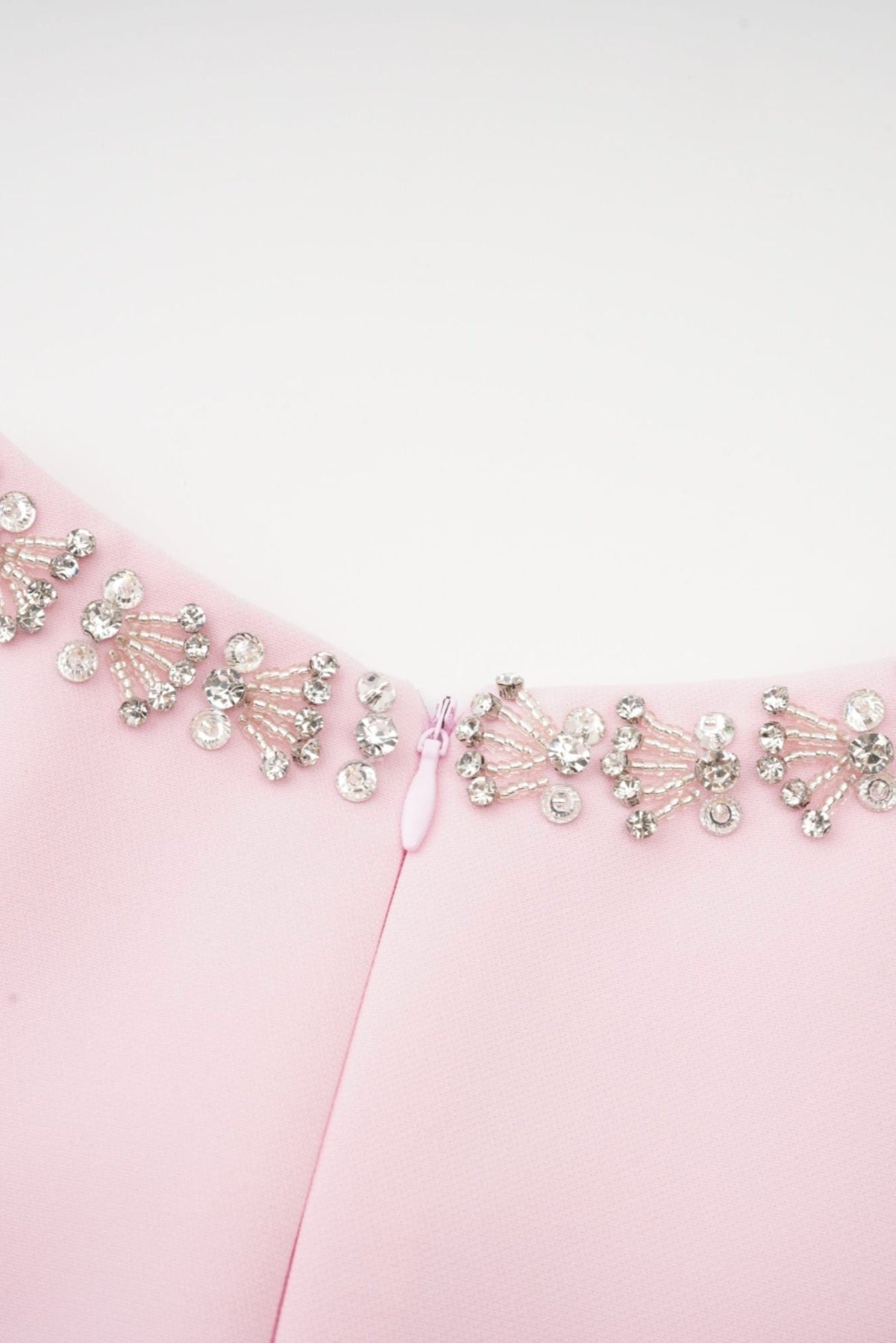 Delicado y radiante, el vestido Linda fusiona feminidad clásica con acentos brillantes. Su escote partido con lazo de cristal aporta un toque encantador, mientras que la silueta midi acampanada crea un movimiento fluido que favorece a todas las figuras. Ideal para eventos de día, celebraciones íntimas o citas con un toque refinado.
