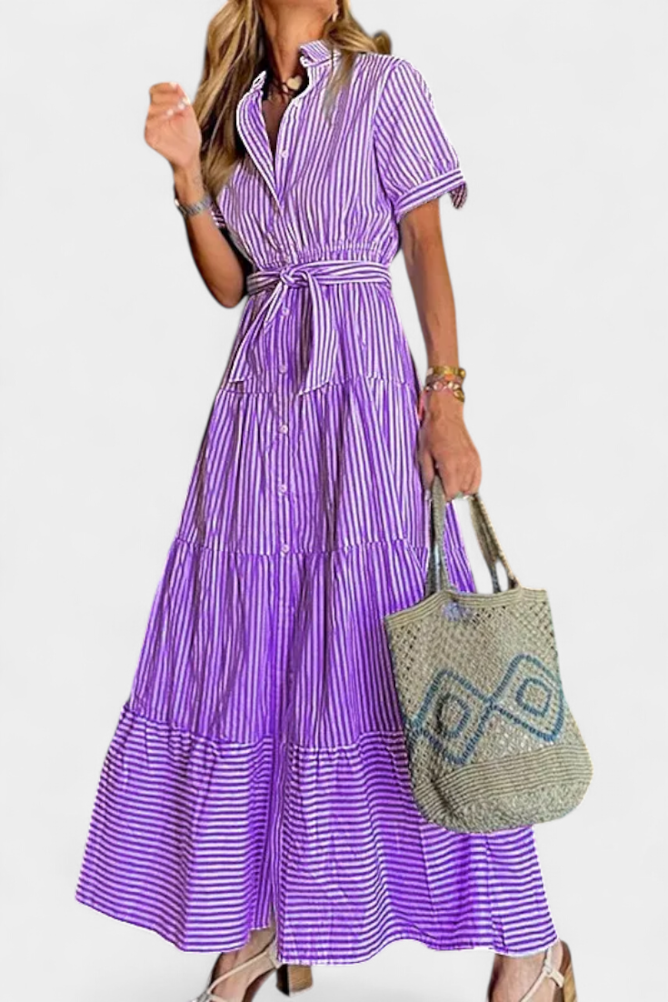 Maya Vestido Camisero Largo de Rayas con Cinturón