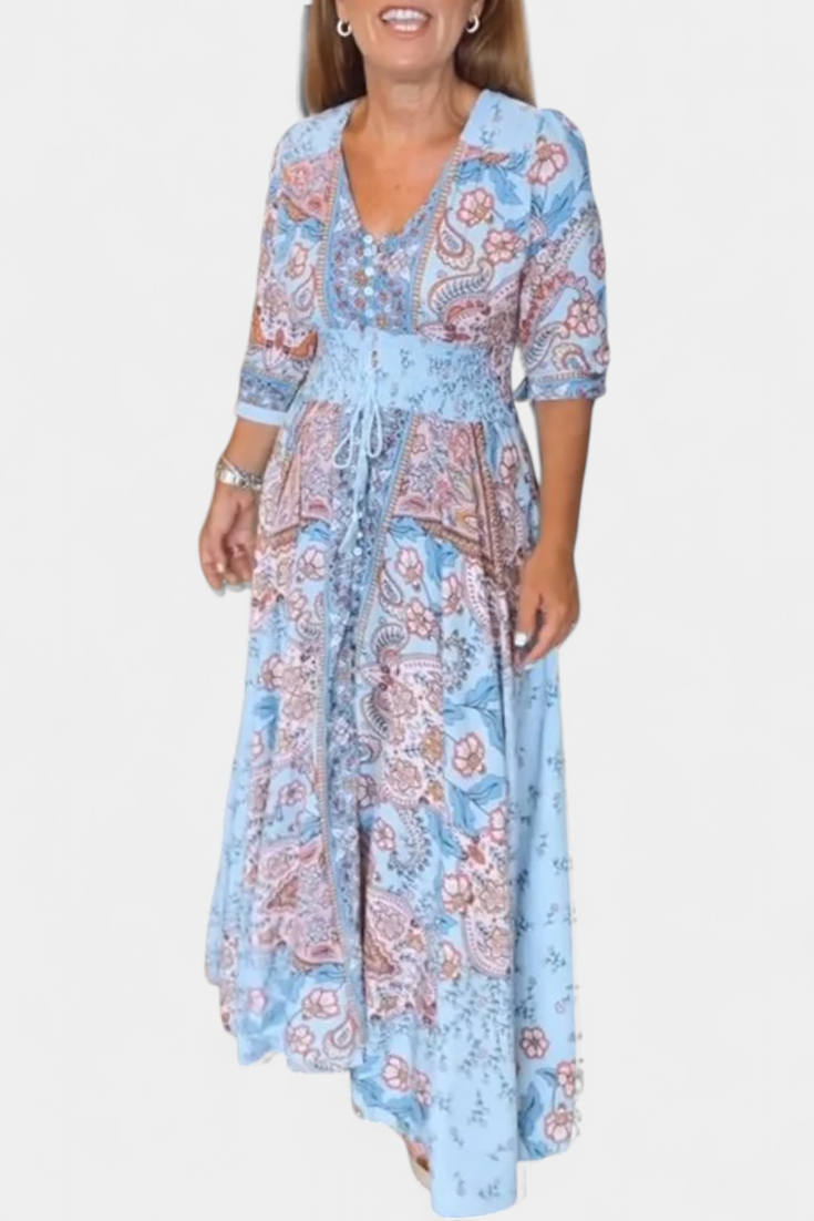 Anfisa Vestido Boho de Verano con Cinturón y Escote en V